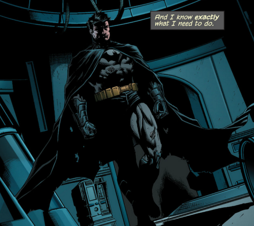 Batman, fully outfitted, walks out of the frame and we smash right into our main story.